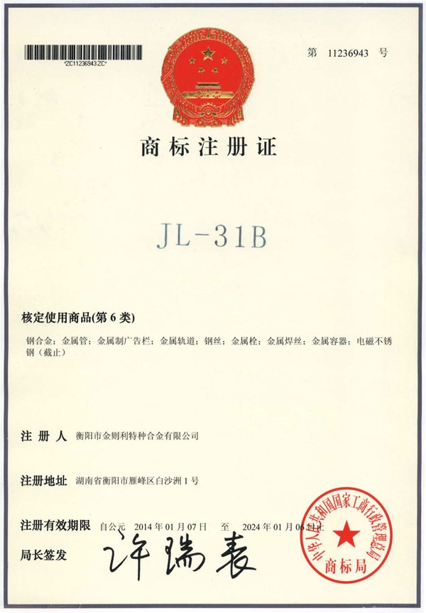 衡陽市金則利特種合金股份有限公司成立于一九九九年十二月,注冊資本人民幣兩千兩百萬元。注冊地址:衡陽市雁峰區(qū)白沙洲工業(yè)園長塘路2號。公司主營耐蝕軟磁合金,為湖南省高新技術企業(yè)。公司自成立以來,即致力于耐蝕軟磁合金的研發(fā)。 研制出的JL-31(00Cr13si2Pb)、JL-31B(00Cr13si2)、JL-31BS(00Cr13Si2S)、JL-37B(0Cr17Si2)、JL-37(0Cr17···